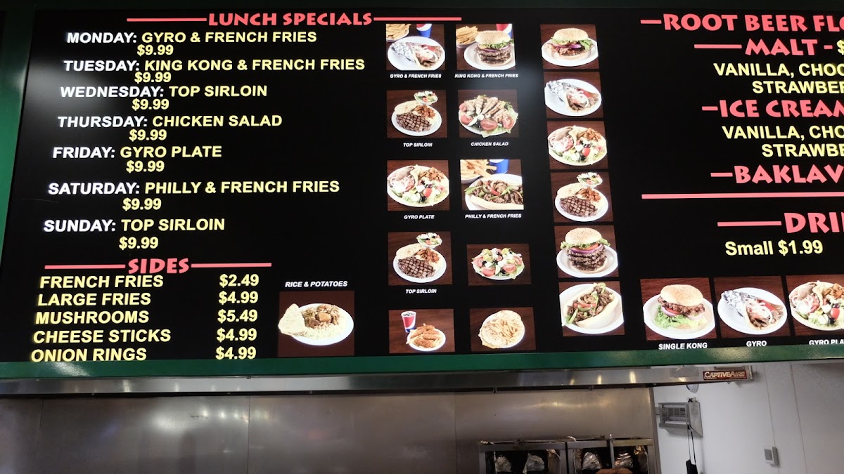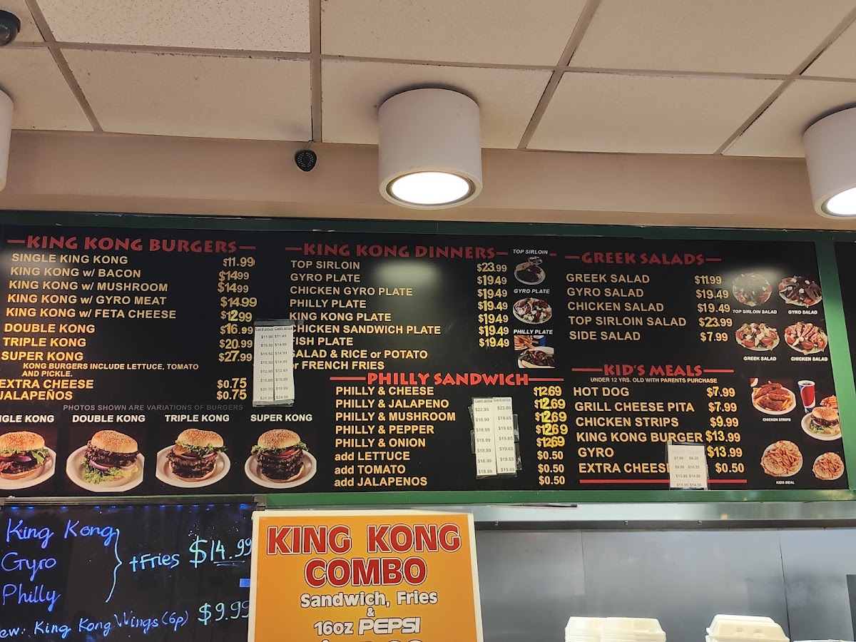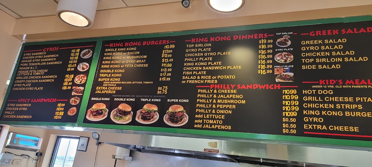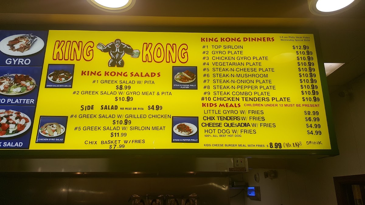 The menu at King Kong Lincoln offers a blend of casual, satisfying fare that fits its lively and approachable setting. Whether you’re stopping by for a quick bite or a heartier meal, you’ll find a range of options that combine classic fast food favorites with flavorful gyro and steak house dishes.